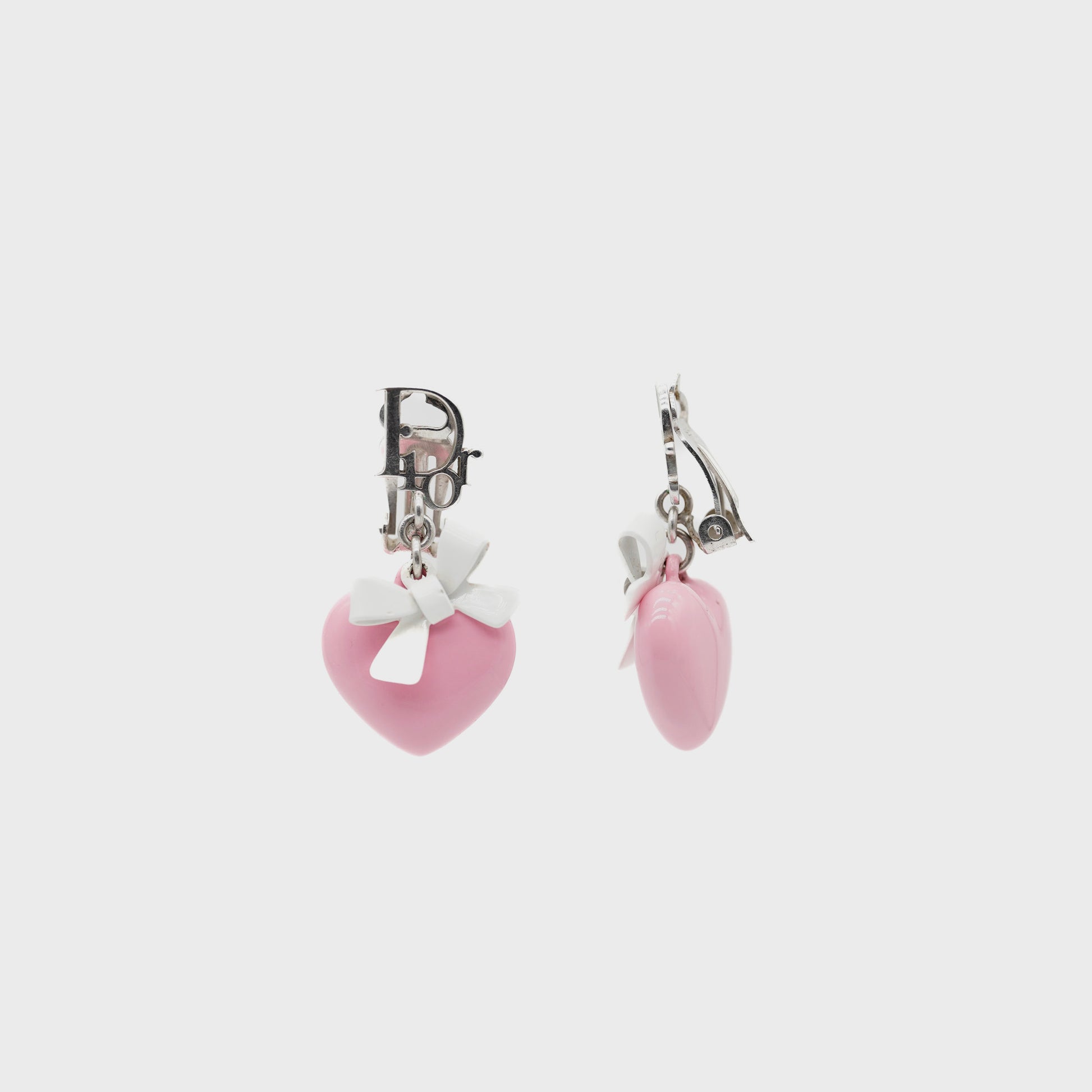 Pair of pink heart ear clips and small Dior ribbon bow.