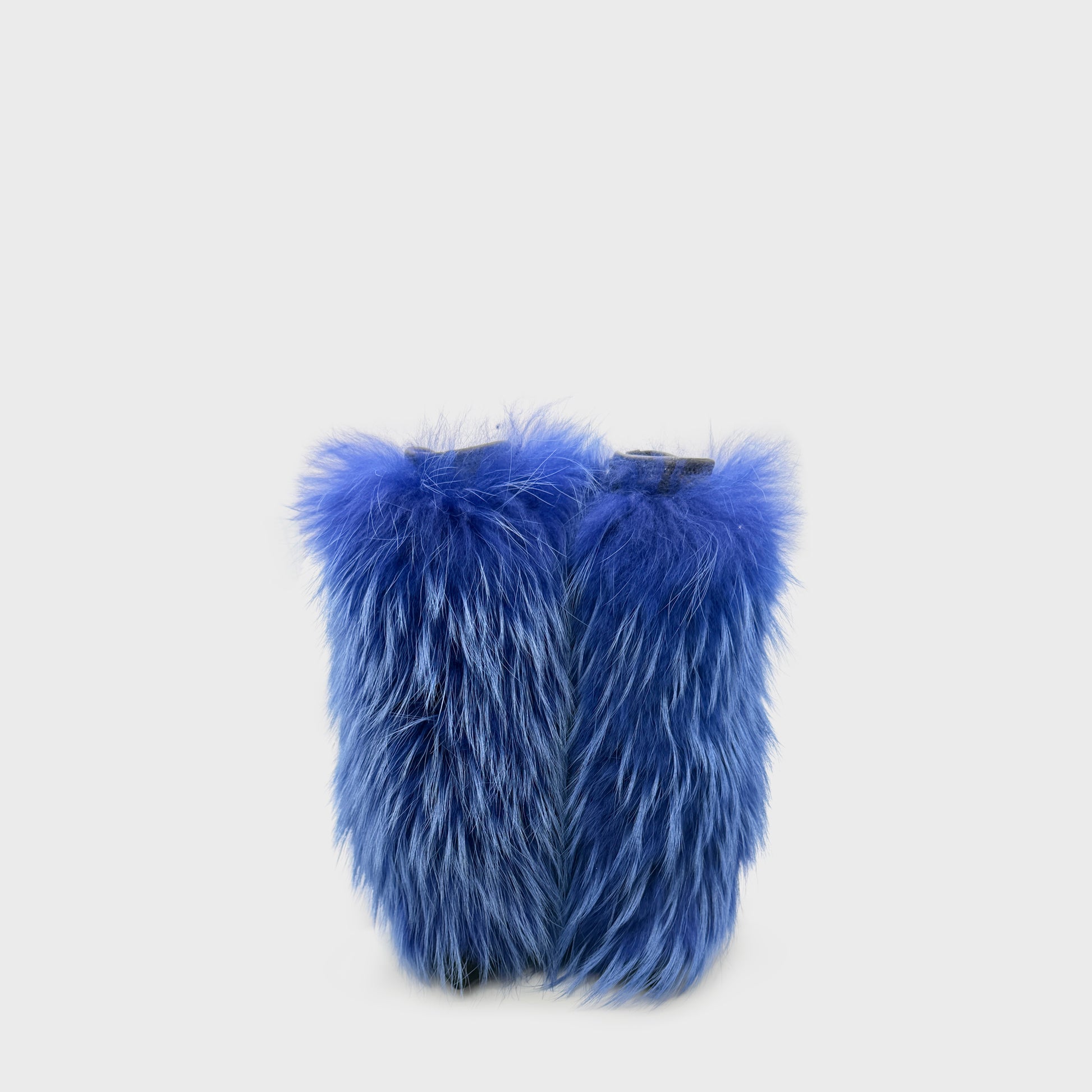 Paire de bottines à bout pointu et talon aiguille, entièrement recouvertes d’une fourrure bleue intense à poil long. La structure en cuir et daim noir disparaît sous cette matière spectaculaire, donnant au soulier une allure presque irréelle, entre objet fétiche et sculpture mode. Silhouette affûtée, talon vertigineux et contraste radical entre la rigueur de la ligne et l’exubérance de la texture. Une pièce statement, glamour et assumée, typique de l’esthétique ultra-sexy de Zanotti.
